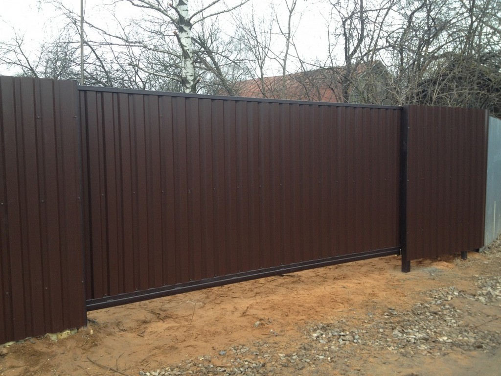 Откатные ворота из профнастила пример 3