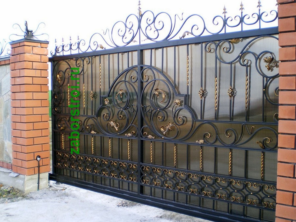 Откатные ворота с ковкой пример 1