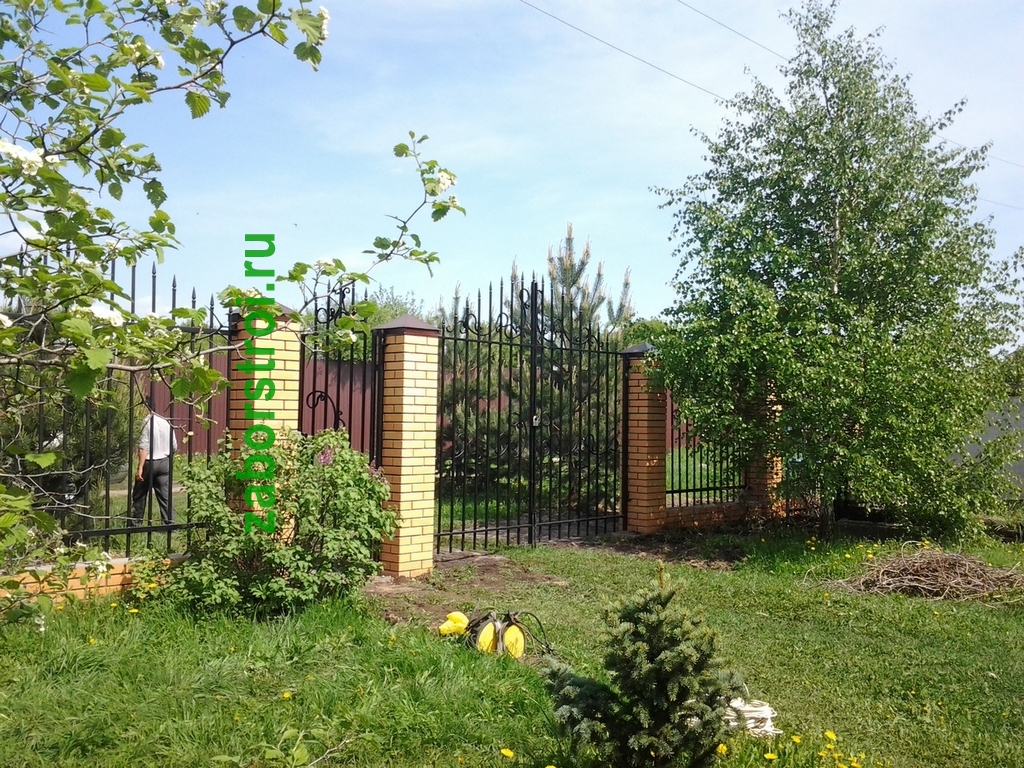 Сварные заборы с кирпичными столбами 60 метров