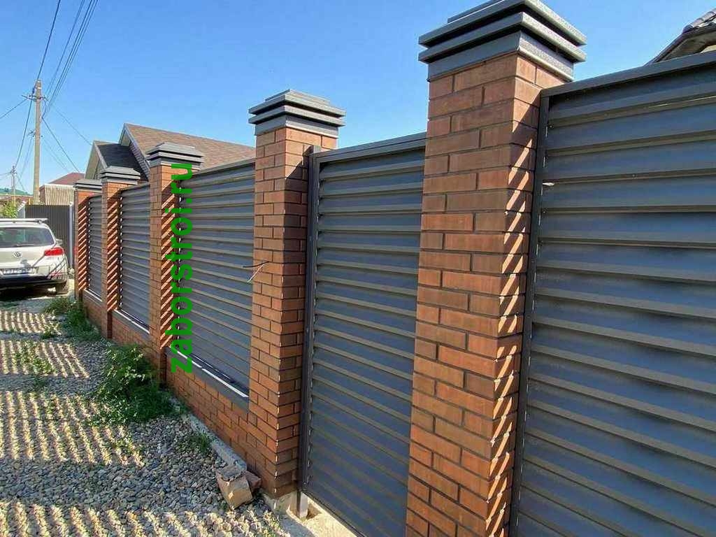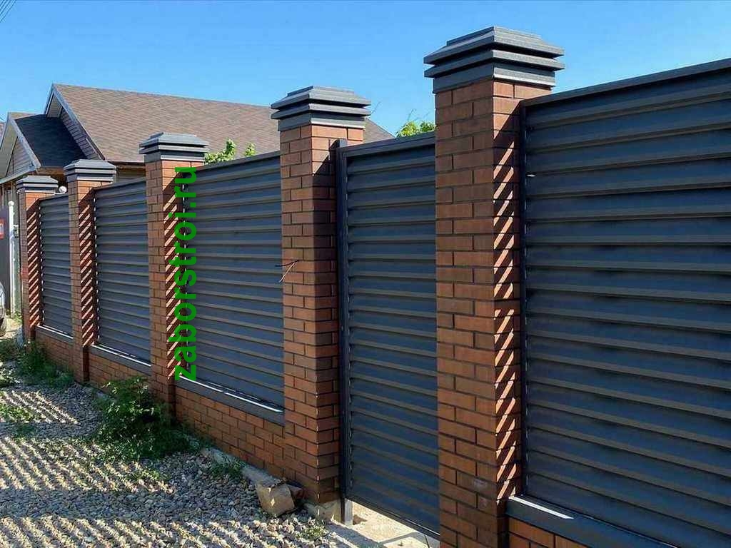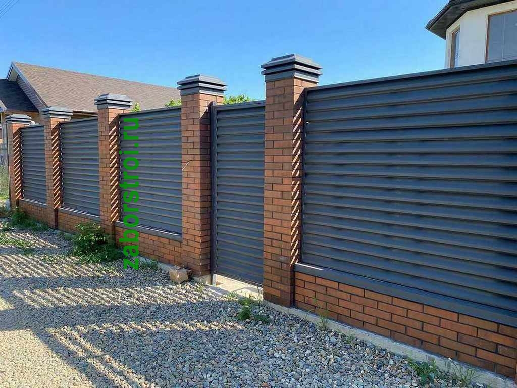 Жалюзи заборы с кирпичными столбами 52 метра